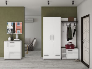 Прихожая Модена — это идеальное решение для вашего дома, объединяющее функциональность и стиль. Она поможет организовать пространство и сделать его более удобным. Вместительные тумбы позволят хранить обувь в порядке, предотвращая беспорядок. Удобные вешалки оснащены прочными крючками для верхней одежды, сумок и аксессуаров. Просторный шкаф идеально подойдет для хранения вещей и различных принадлежностей.
