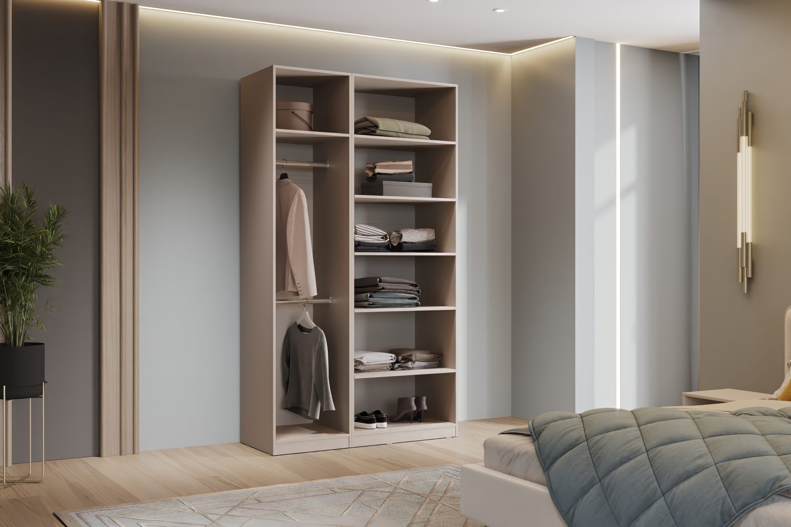 Гардеробная система «Эккервуд» — это удобное и практичное решение для хранения вещей и различных предметов в доме. Благодаря продуманной конструкции она помогает эффективно организовать пространство, поддерживать порядок и легко размещать всё необходимое — от одежды до бытовых мелочей.