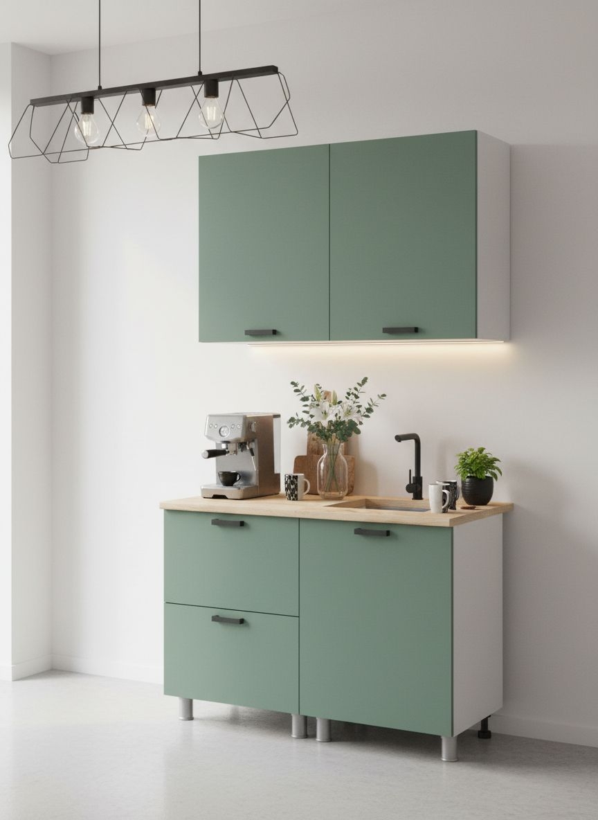 Материал устойчив к выцветанию и воздействию бытовой химии, прост в уходе и рассчитан на длительную эксплуатацию. Поверхность обладает повышенными гидрофобными свойствами, что делает кухню практичной и удобной для ежедневного использования.