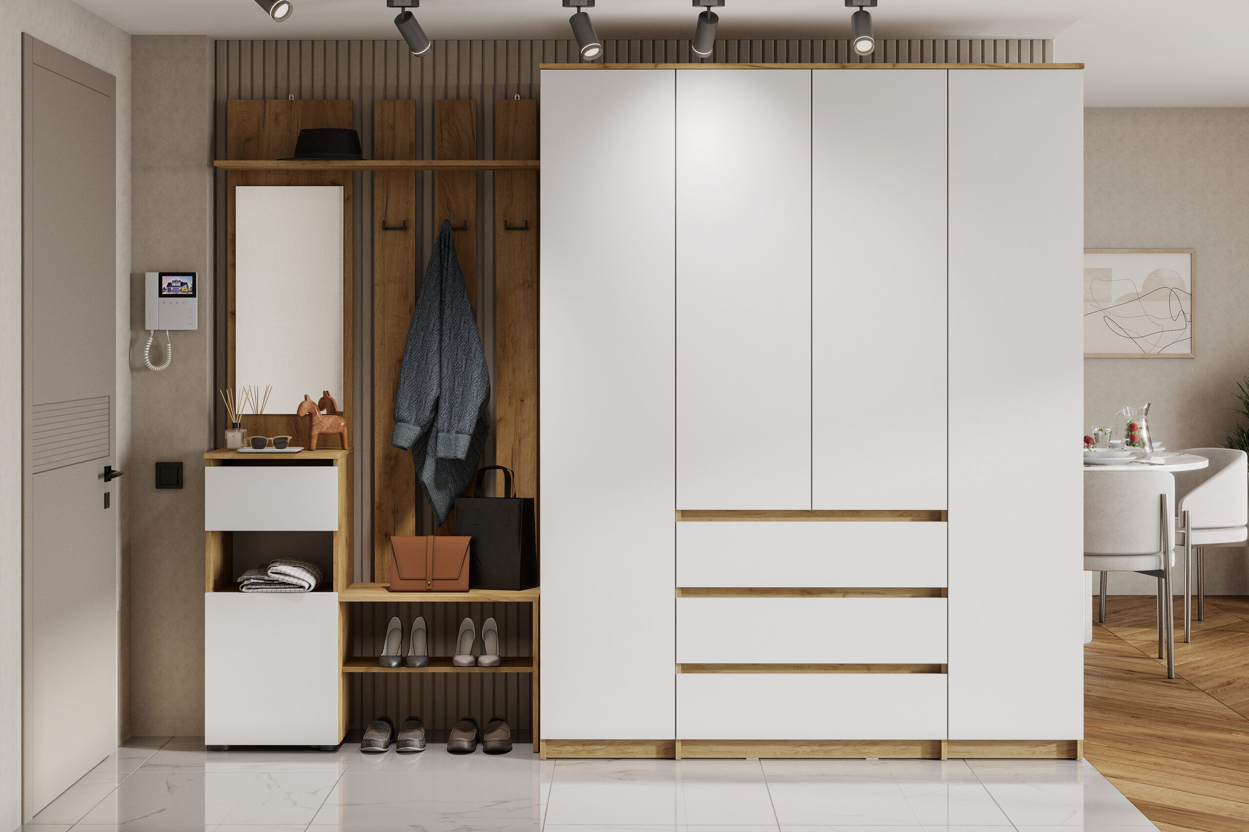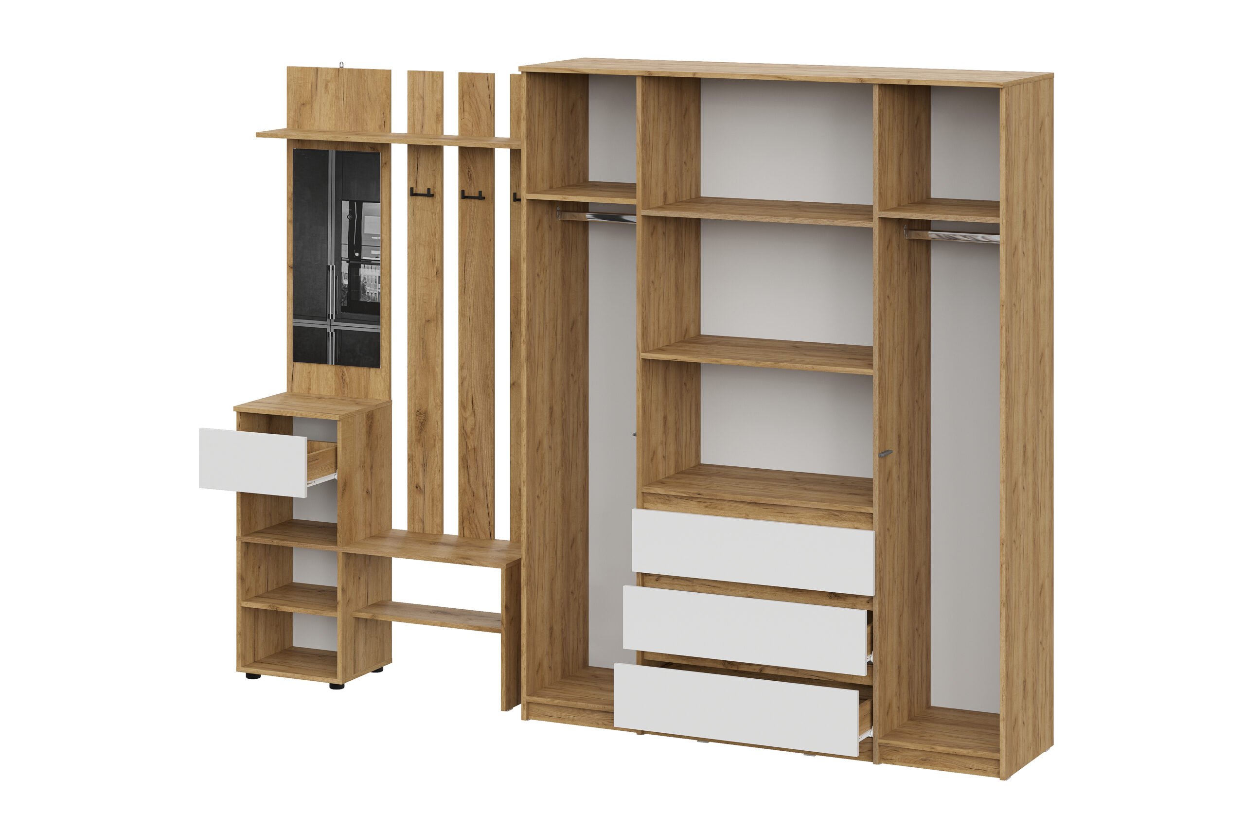 Прихожая Денвер, Дуб Золотой, Белый. Комплект 5 - Фирменный интернет-магазин мебели «Арника»