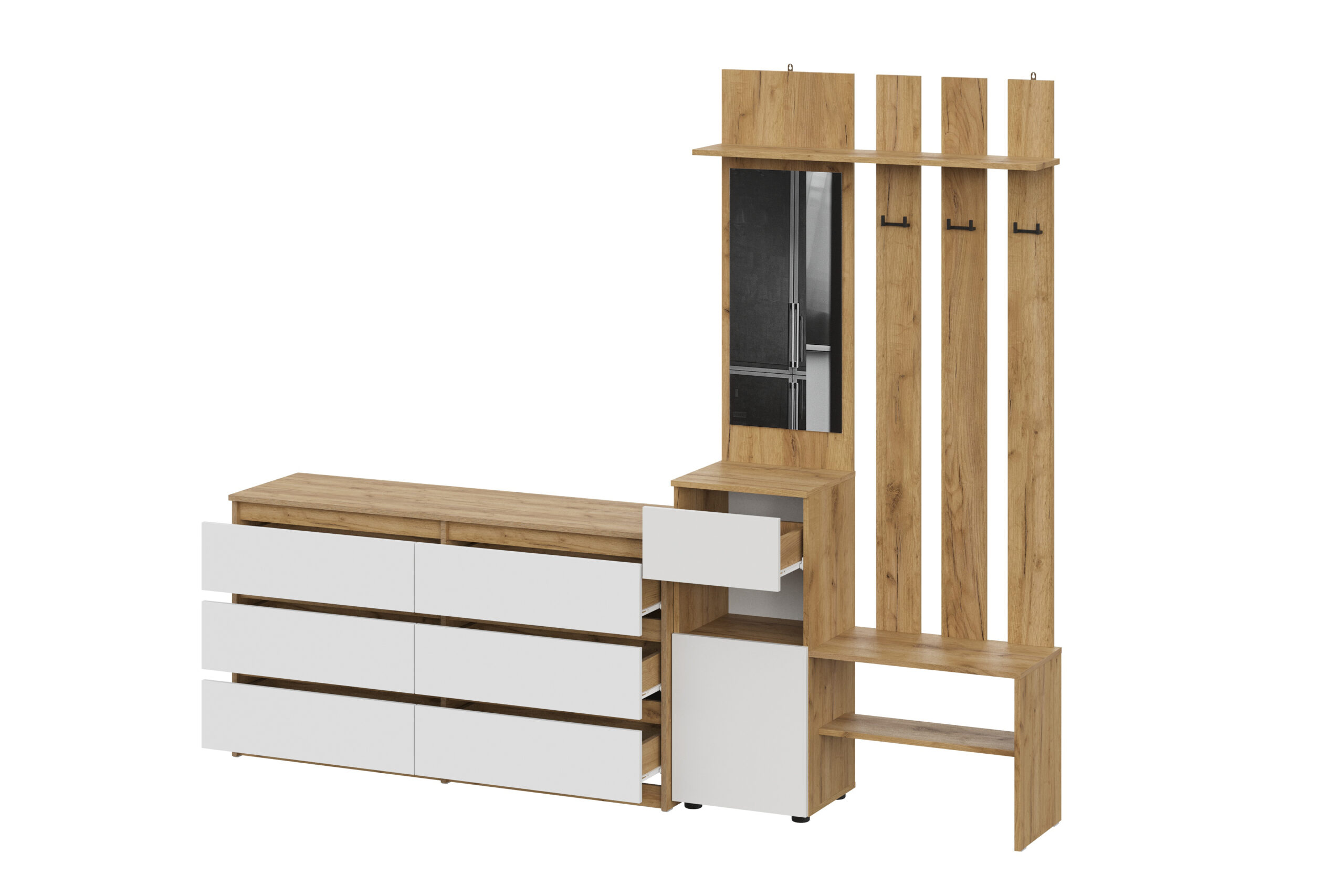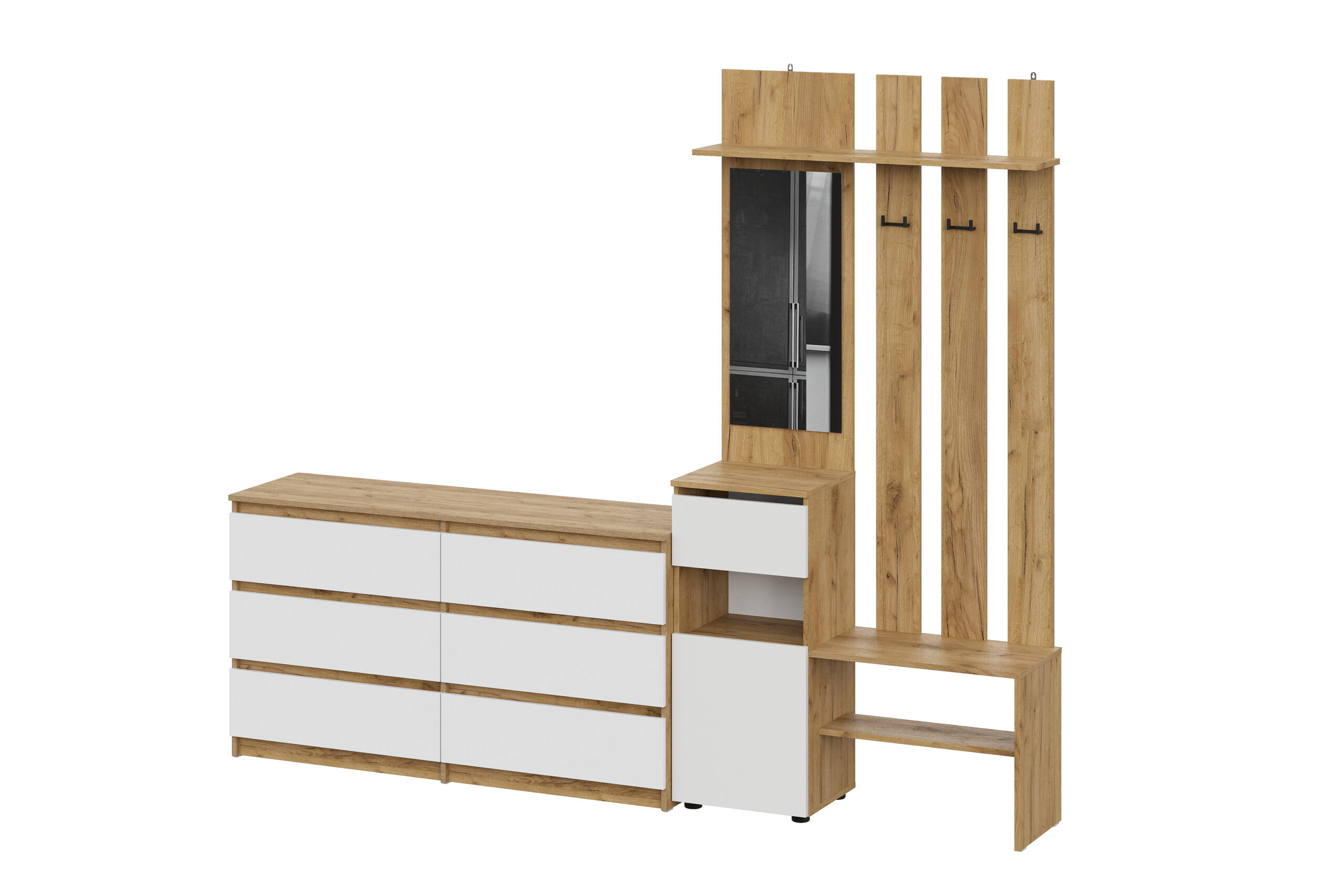 Прихожая Денвер, Дуб Золотой, Белый. Комплект 3