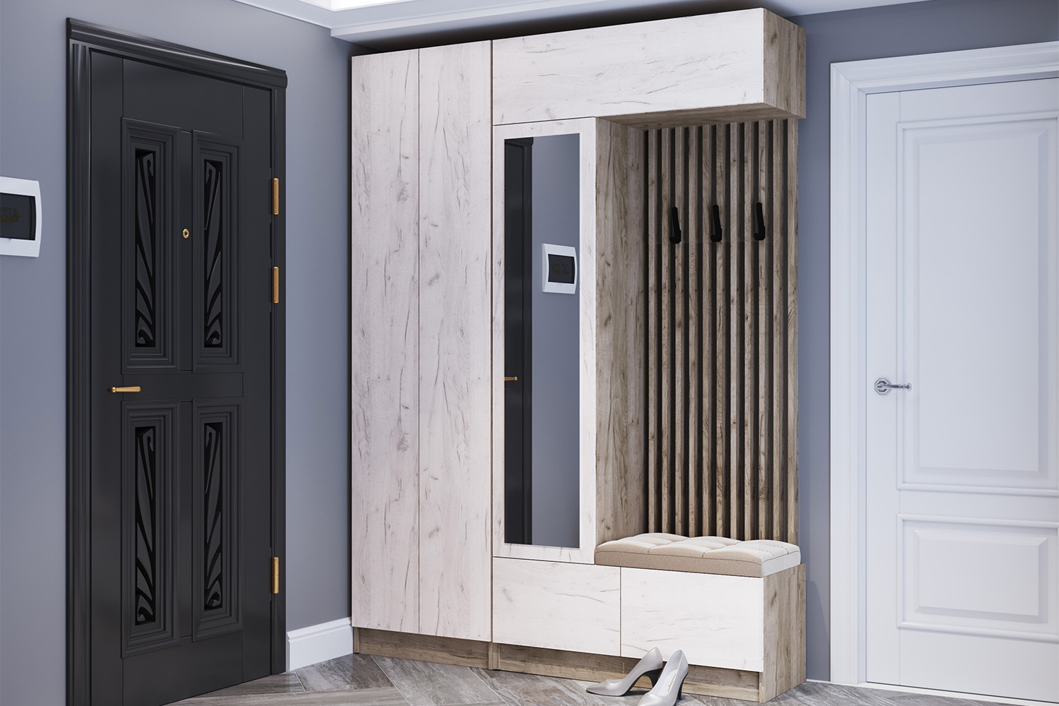 Прихожая Руэлла. Комплект 6, Дуб крафт серый, Дуб крафт белый - Фирменный интернет-магазин мебели «Арника»