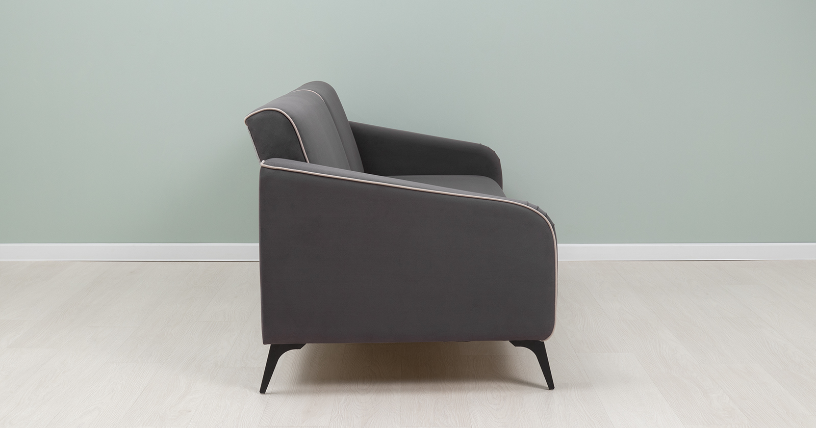 Обивка дивана выполнена из велюра — высококачественного материала, состоящего из 100 % полиэстера. Велюр обладает высокой износостойкостью, легко чистится и имеет средневыраженный «пальчиковый эффект», что обеспечивает долговечность и приятный внешний вид изделия.