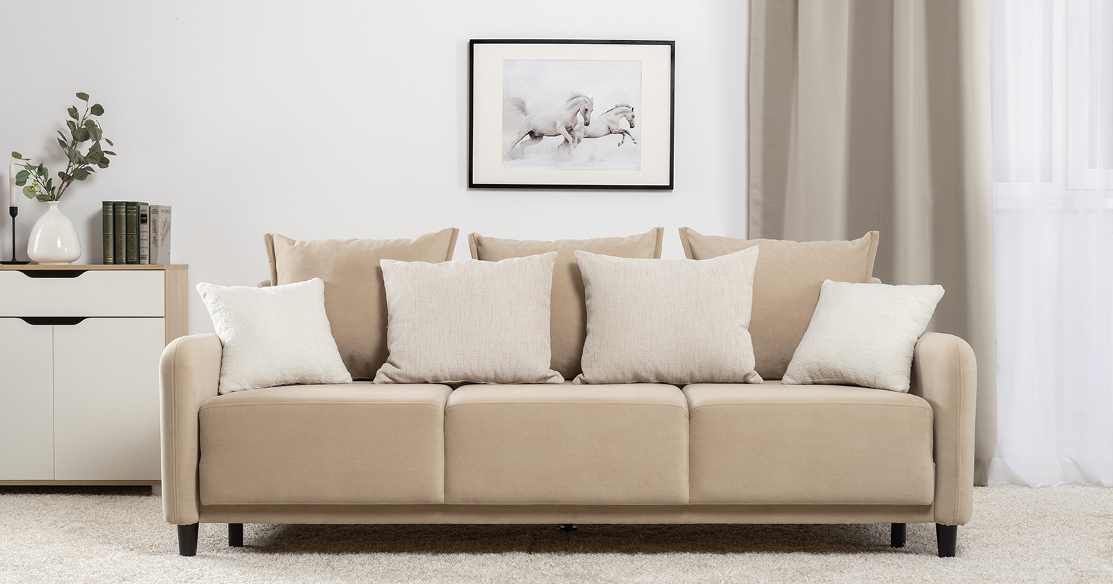 Диван-кровать «Дакота» — это стильное и функциональное решение для вашей гостиной. Опоры из массива дерева придают ему изысканный вид, а объёмные подушки обеспечивают комфорт во время отдыха. В комплекте идут пять двусторонних приспинных подушек и две декоративные подушки-думки из ткани букле. Благодаря надёжному механизму трансформации и ровному спальному месту, вы сможете наслаждаться полноценным сном.