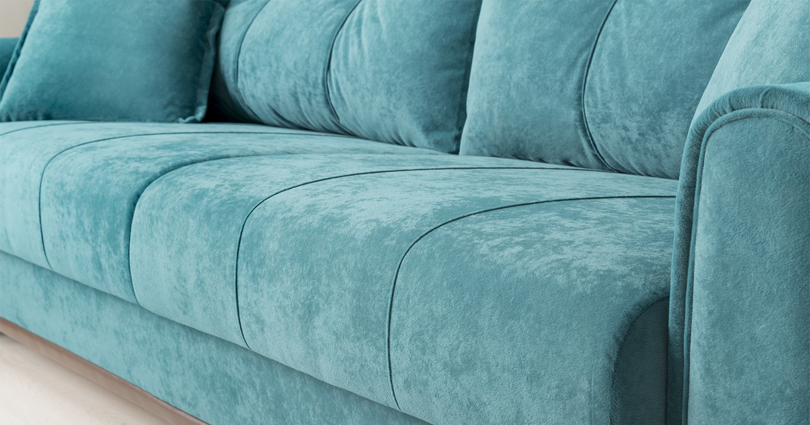 Плимут выполнен в модном мягком велюре Romance оригинальной фактуры. Эта ткань легко чистится, устойчива к зацепам и обладает повышенной износостойкостью. Благодаря особой технологии гладкого крашения Frozen Flower на поверхности ткани присутствует лёгкий краш-эффект, подчёркивающий невероятно мягкую фактуру ткани.