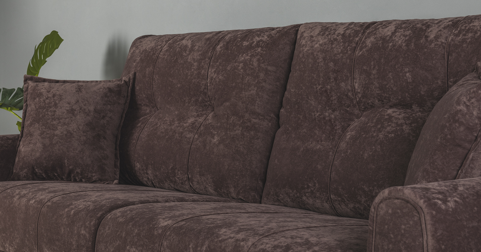 Плимут выполнен в модном мягком велюре Romance оригинальной фактуры. Эта ткань легко чистится, устойчива к зацепам и обладает повышенной износостойкостью. Благодаря особой технологии гладкого крашения Frozen Flower на поверхности ткани присутствует лёгкий краш-эффект, подчёркивающий невероятно мягкую фактуру ткани.