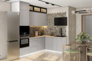 Готовая кухня Вектор — компактное и функциональное решение для вашего дома. Кухонный гарнитур сочетает в себе современный минимализм, эргономичность и надежность.