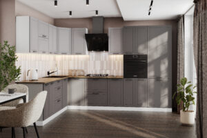Готовая кухня Вектор — компактное и функциональное решение для вашего дома. Кухонный гарнитур сочетает в себе современный минимализм, эргономичность и надежность.