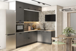 Готовая кухня Модус — компактное и функциональное решение для вашего дома. Кухонный гарнитур сочетает в себе современный минимализм, эргономичность и надежность.