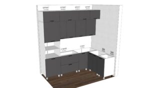 Также учтите, что в состав кухонного гарнитура входит фальшпанель толщиной 16 мм, поэтому длину столешницы следует увеличить на 5 см при заказе.