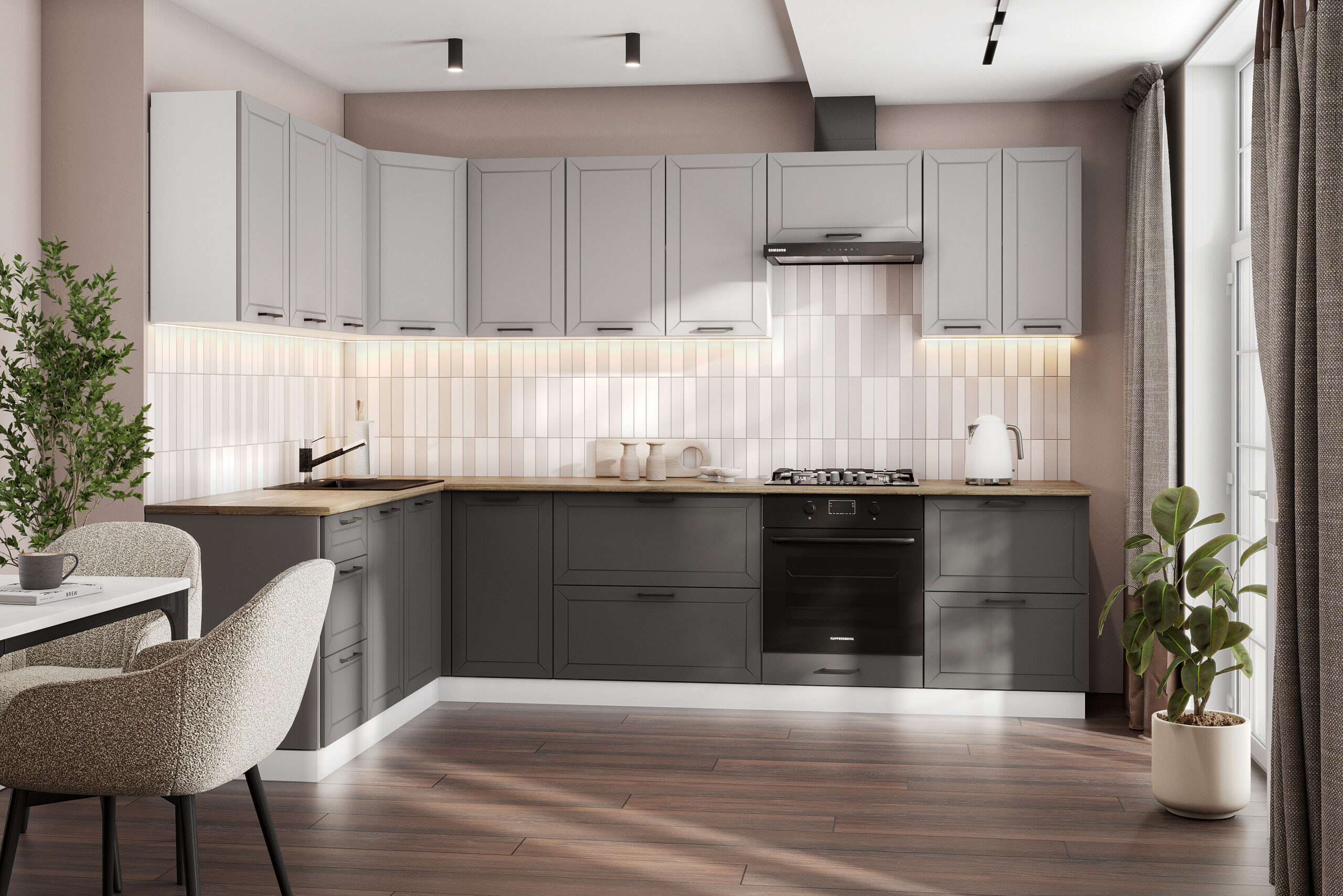 Готовая кухня Вектор — компактное и функциональное решение для вашего дома. Кухонный гарнитур сочетает в себе современный минимализм, эргономичность и надежность.