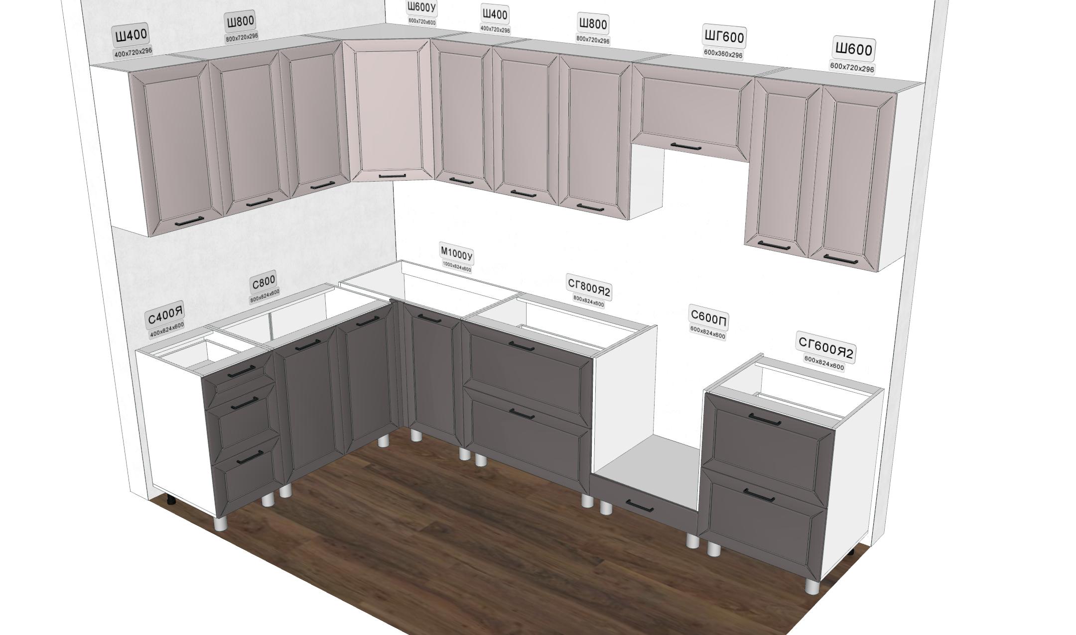 Также учтите, что в состав кухонного гарнитура входит фальшпанель толщиной 16 мм, поэтому длину столешницы следует увеличить на 5 см при заказе.