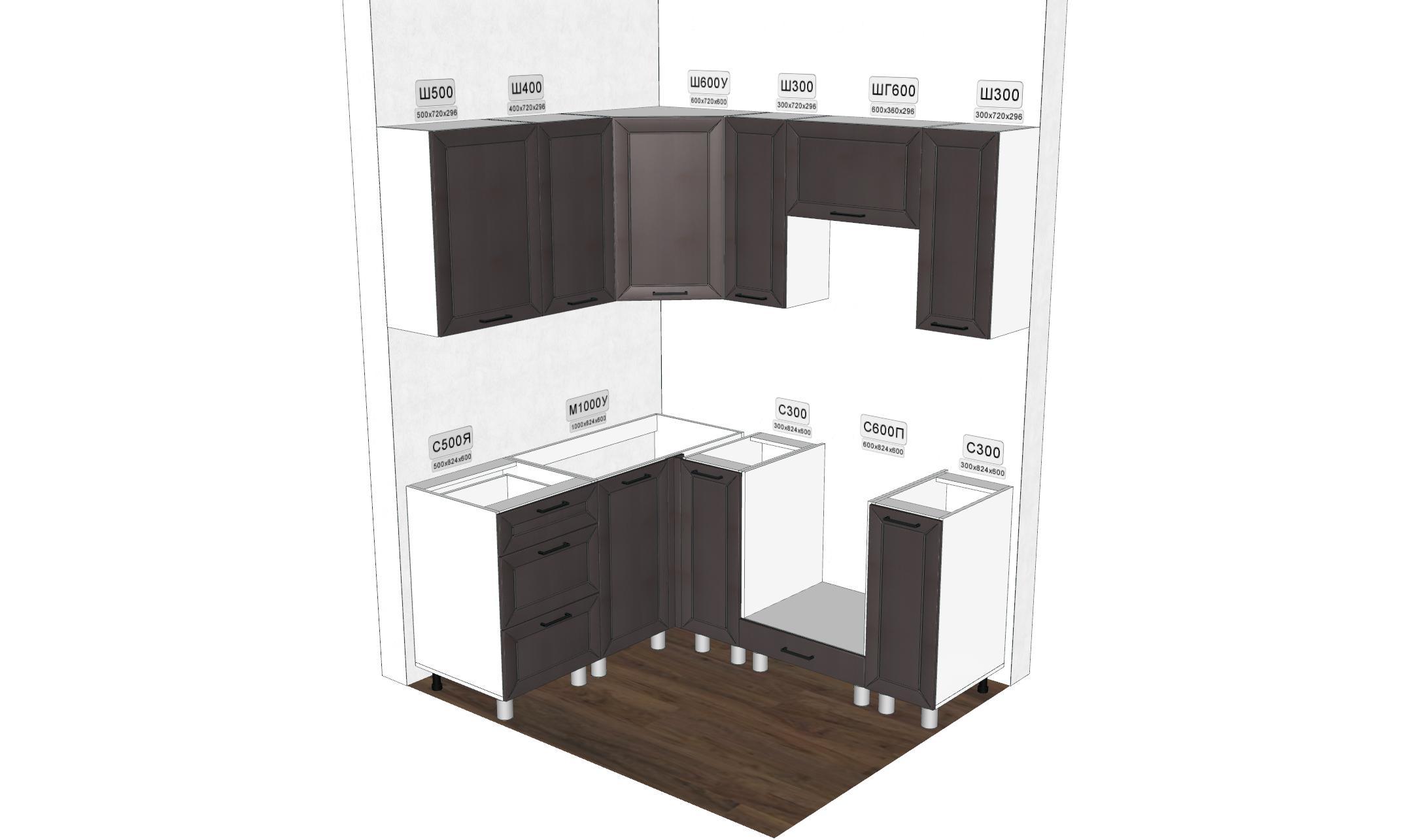 Столешница, мойка, смеситель, цоколь, стеновая панель и ручки приобретаются отдельно.