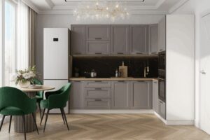 Готовая кухня Вектор — компактное и функциональное решение для вашего дома. Кухонный гарнитур сочетает в себе современный минимализм, эргономичность и надежность.