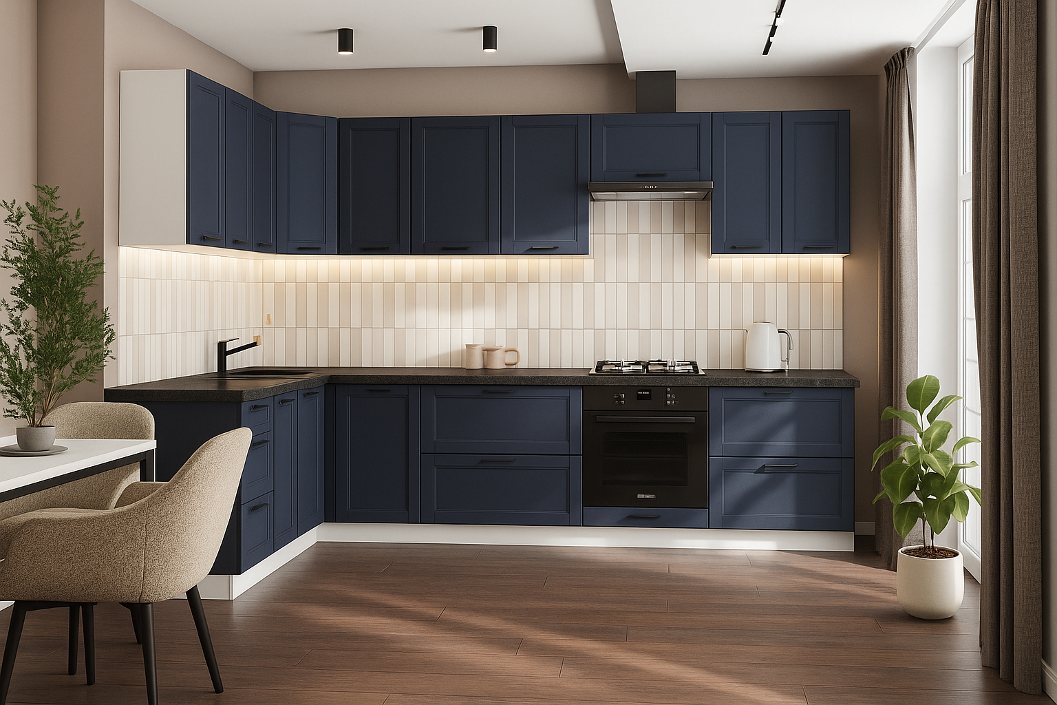 Готовая кухня Вектор — компактное и функциональное решение для вашего дома. Кухонный гарнитур сочетает в себе современный минимализм, эргономичность и надежность.
