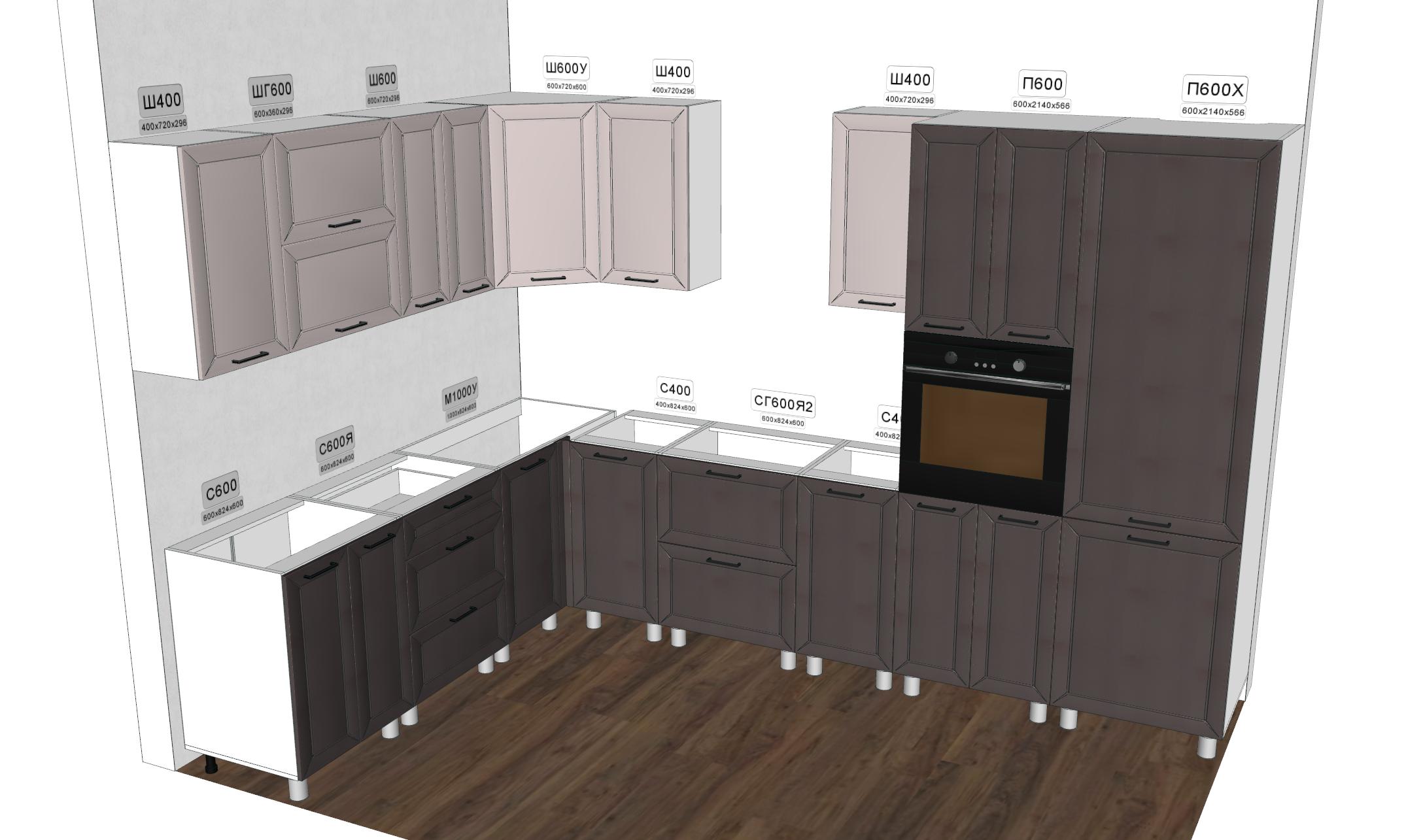 Также учтите, что в состав кухонного гарнитура входит фальшпанель толщиной 16 мм, поэтому длину столешницы следует увеличить на 5 см при заказе.