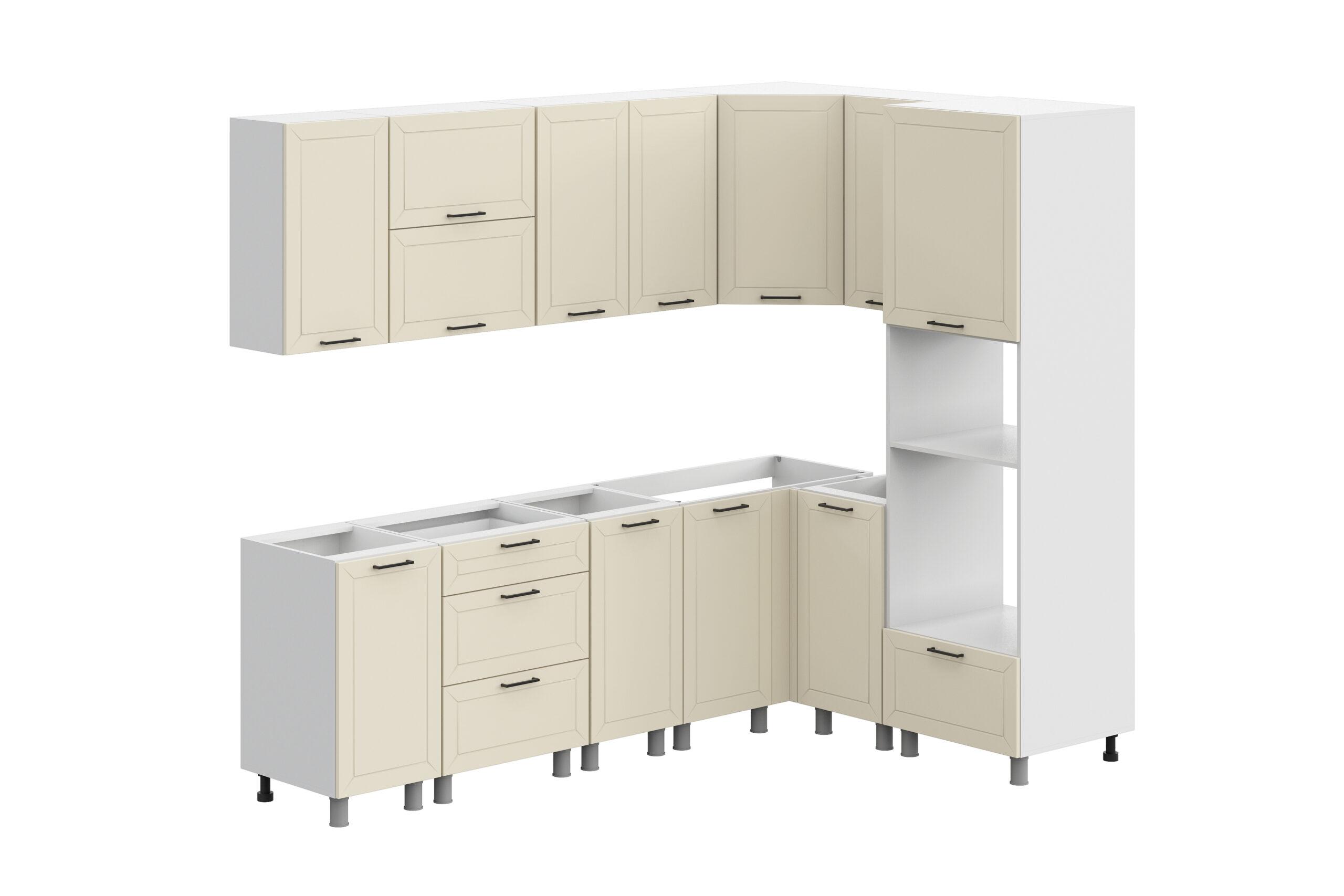 Также учтите, что в состав кухонного гарнитура входит фальшпанель толщиной 16 мм, поэтому длину столешницы следует увеличить на 5 см при заказе.