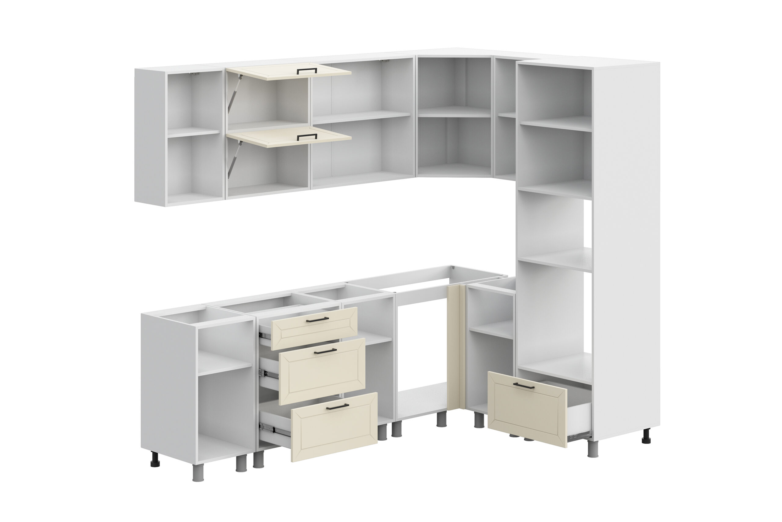 Готовая кухня Вектор — компактное и функциональное решение для вашего дома. Кухонный гарнитур сочетает в себе современный минимализм, эргономичность и надежность.
