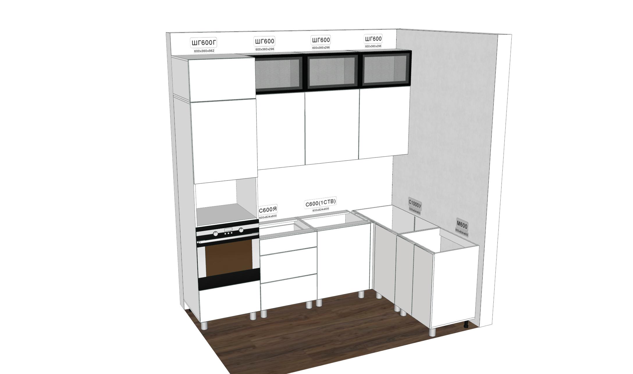 Столешница, мойка, смеситель, цоколь, стеновая панель и ручки приобретаются отдельно.