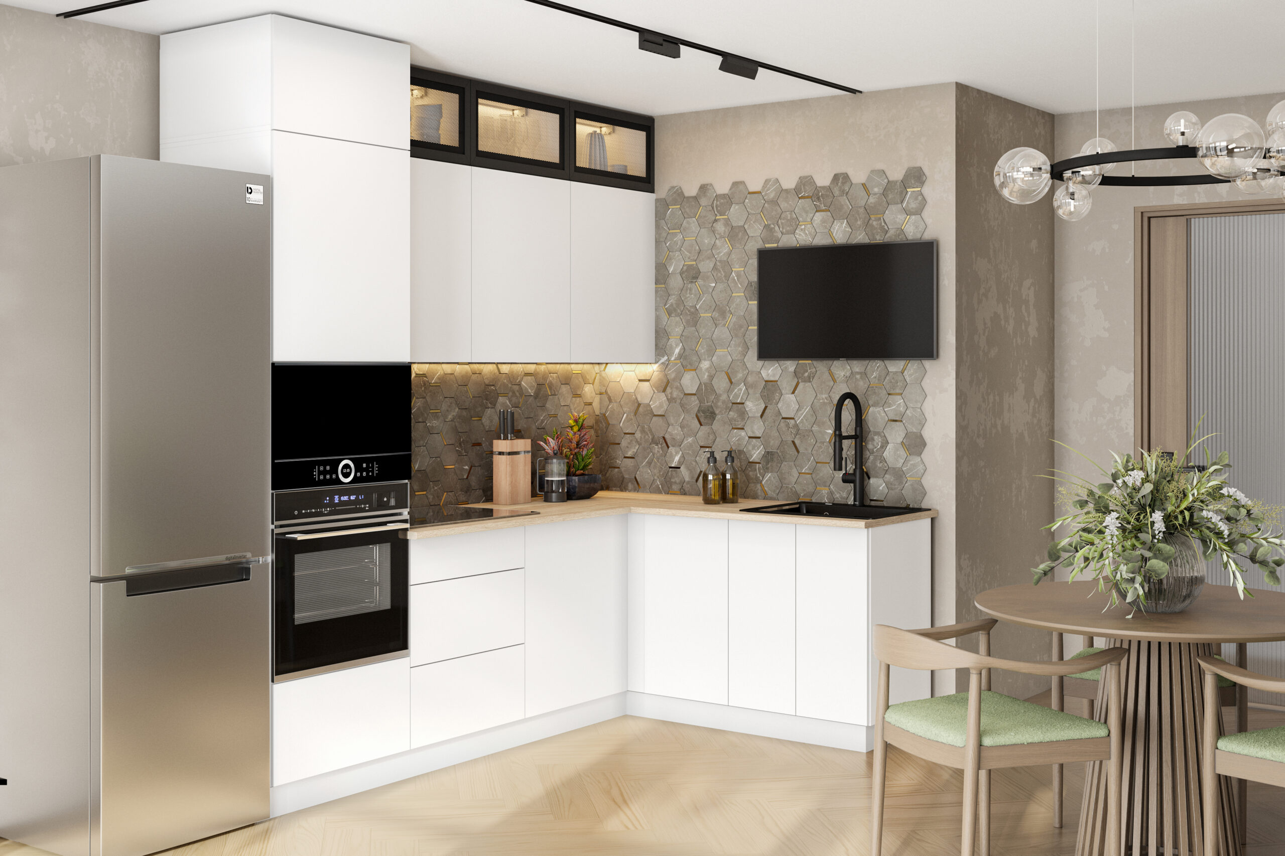 Готовая кухня Вектор — компактное и функциональное решение для вашего дома. Кухонный гарнитур сочетает в себе современный минимализм, эргономичность и надежность.