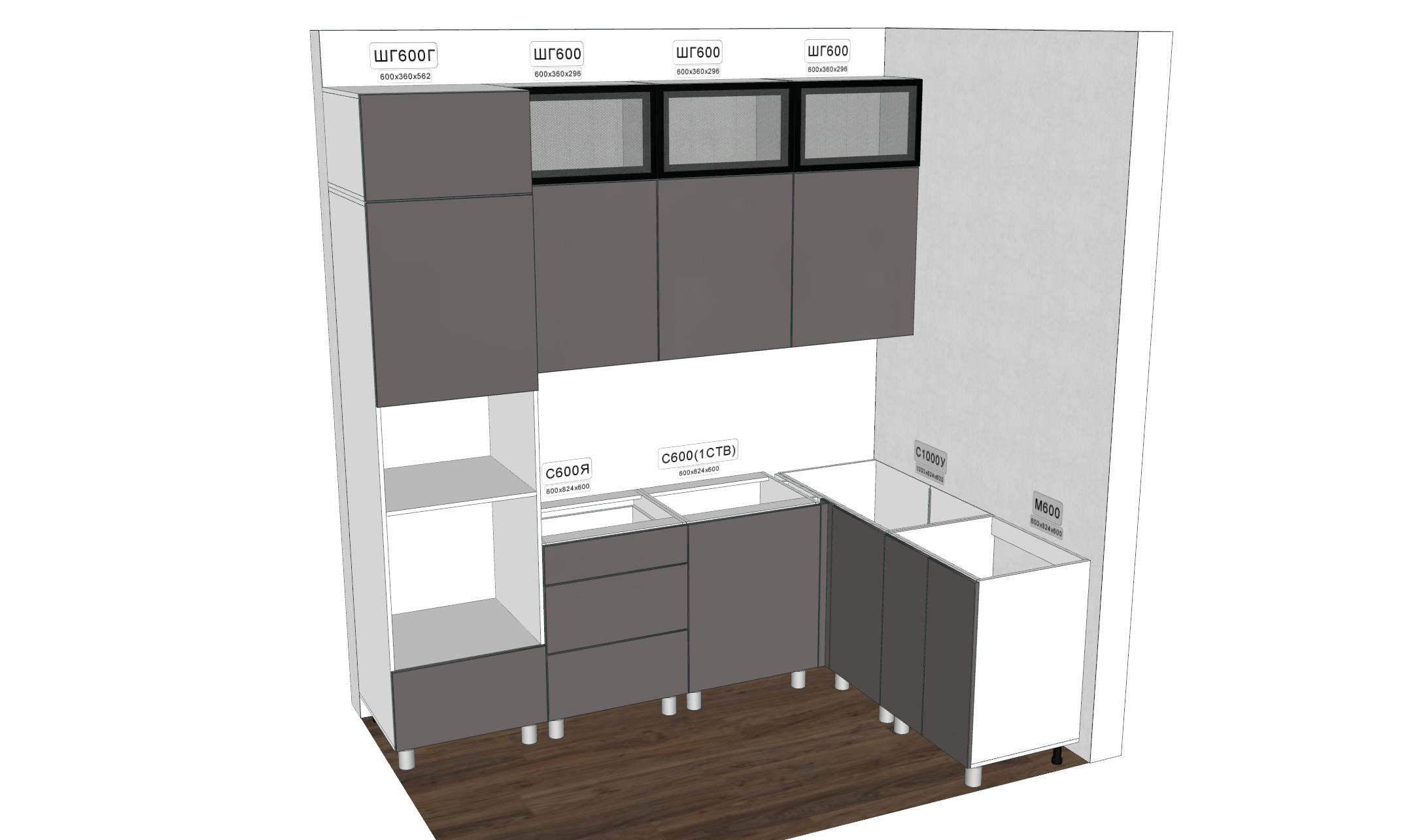 КГ Угловой Модерн 240*160 Грей (без столешницы) в.24 - Фирменный интернет-магазин мебели «Арника»