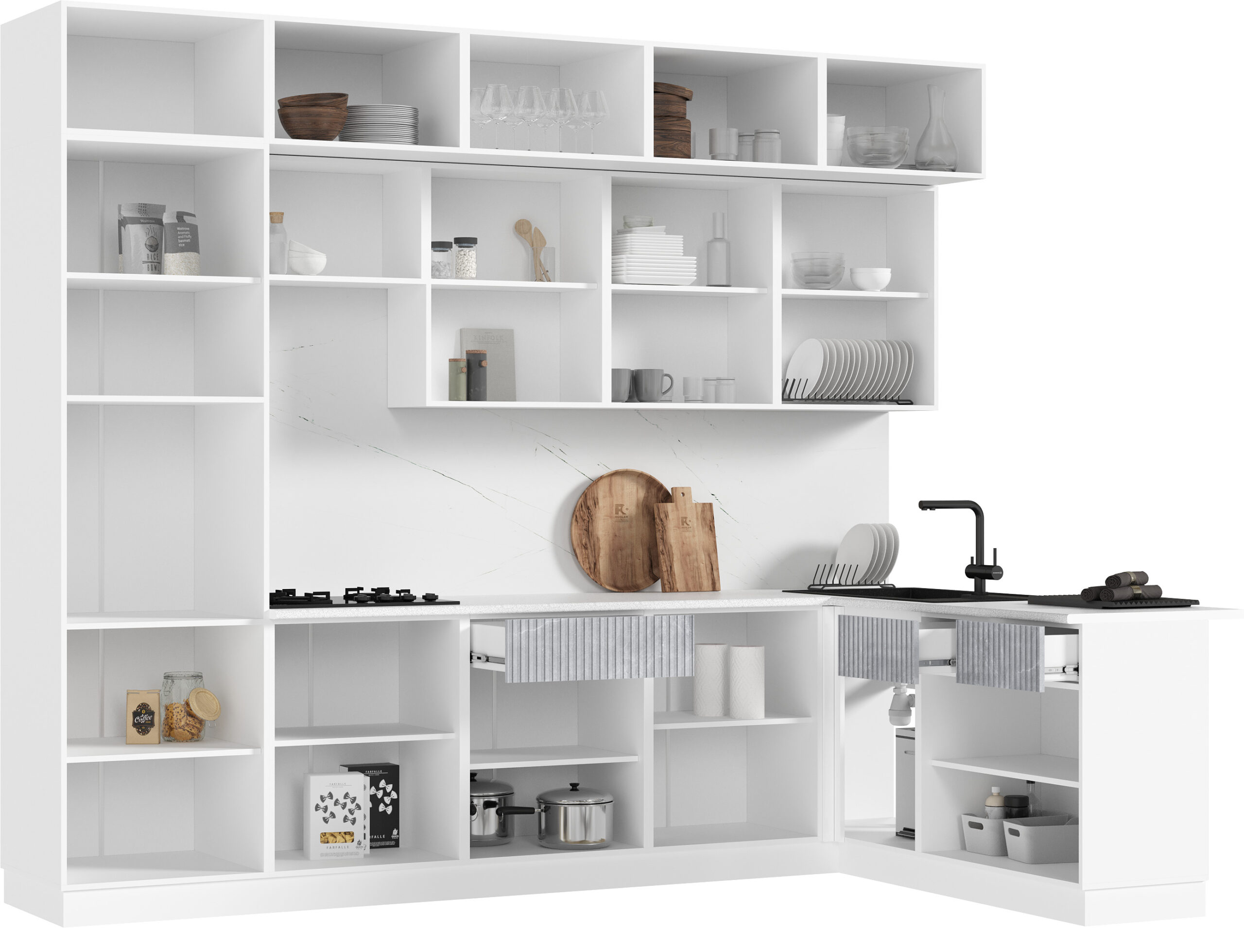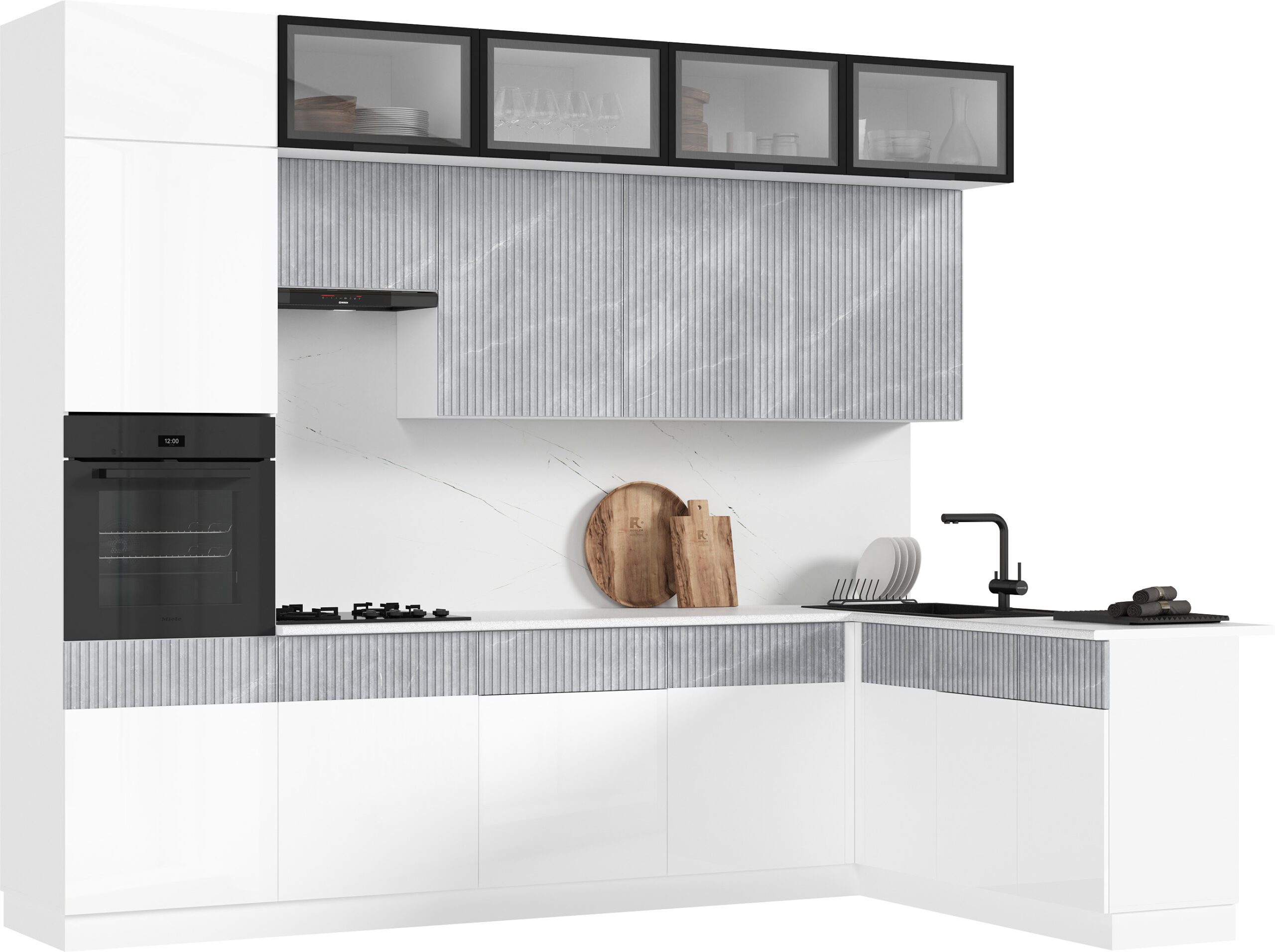 Кухня Оливия NEW 3,0х1,8м (Белый глянец холодный/Мрамор глянец, Белый) - Фирменный интернет-магазин мебели «Арника»