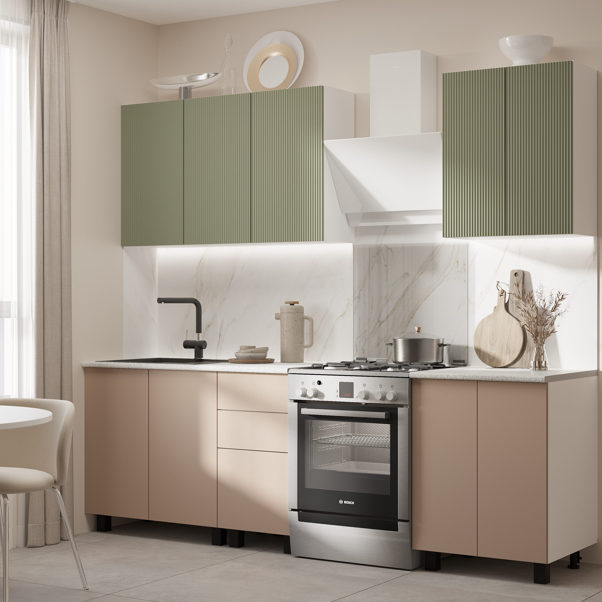 Кухонный гарнитур шириной 1,8 м — компактное решение для малогабаритных кухонь, студий и квартир, где важно рационально использовать пространство.