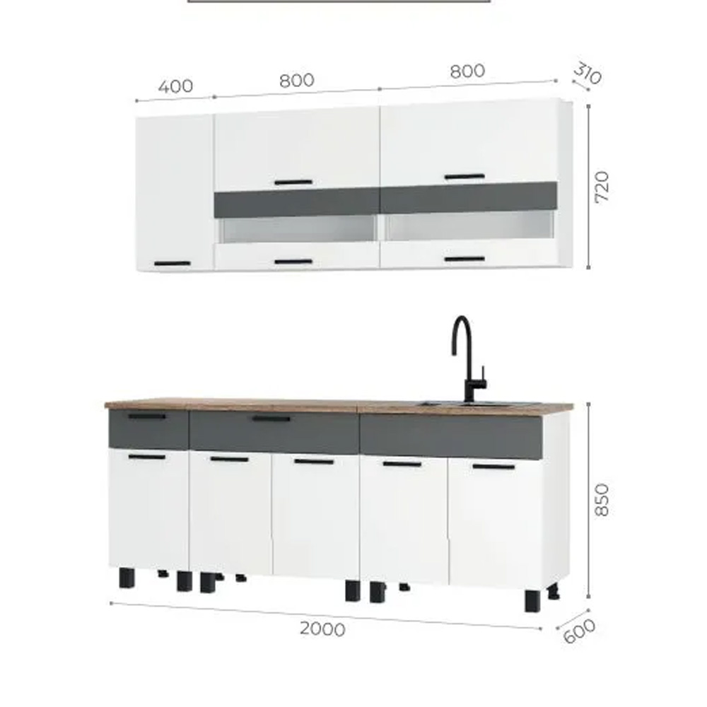 Кухня 2,0м "Монтана" белый/графит - Фирменный интернет-магазин мебели «Арника»