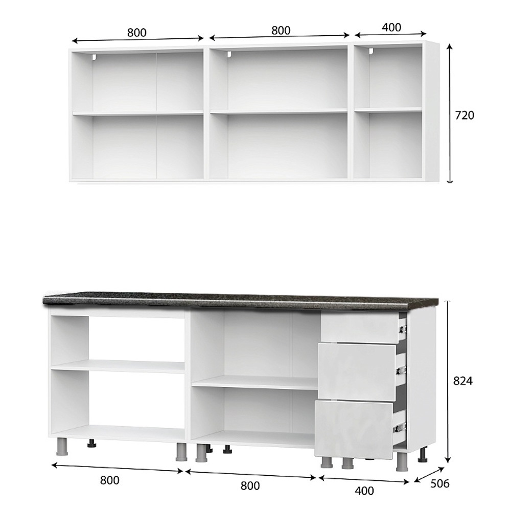 Кухонный гарнитур "Модерн New" (2,0м) (со столешницей 26 мм) Белый/Белый глянец/Черный - Фирменный интернет-магазин мебели «Арника»