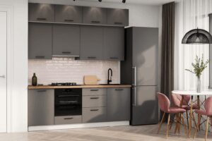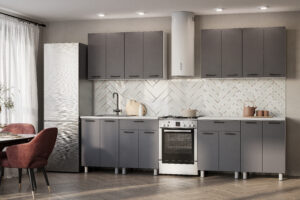 Готовая кухня Вектор — компактное и функциональное решение для вашего дома. Кухонный гарнитур сочетает в себе современный минимализм, эргономичность и надежность.