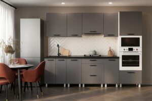 Готовая кухня Вектор — компактное и функциональное решение для вашего дома. Кухонный гарнитур сочетает в себе современный минимализм, эргономичность и надежность.