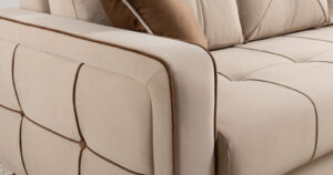 Кресло Черри Н из велюра — отличный выбор для дополнения дивана Черри Н. Бархатистая матовая поверхность материала прекрасно сочетается с различными материалами, такими как кожа, текстиль или дерево, что делает его подходящим для любого стиля интерьера. Кроме того, велюр легко чистится и прост в уходе, что делает его практичным решением для вашего дома. Состав ткани — 100 % полиэстер, плотность — 460 г/кв. м, а количество циклов истирания превышает 50 000.