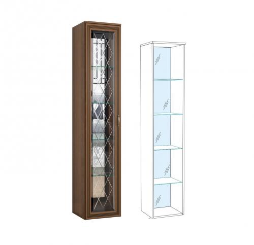 витражная стеклянная дверца, набор стеклянных полок и зеркальная стенка