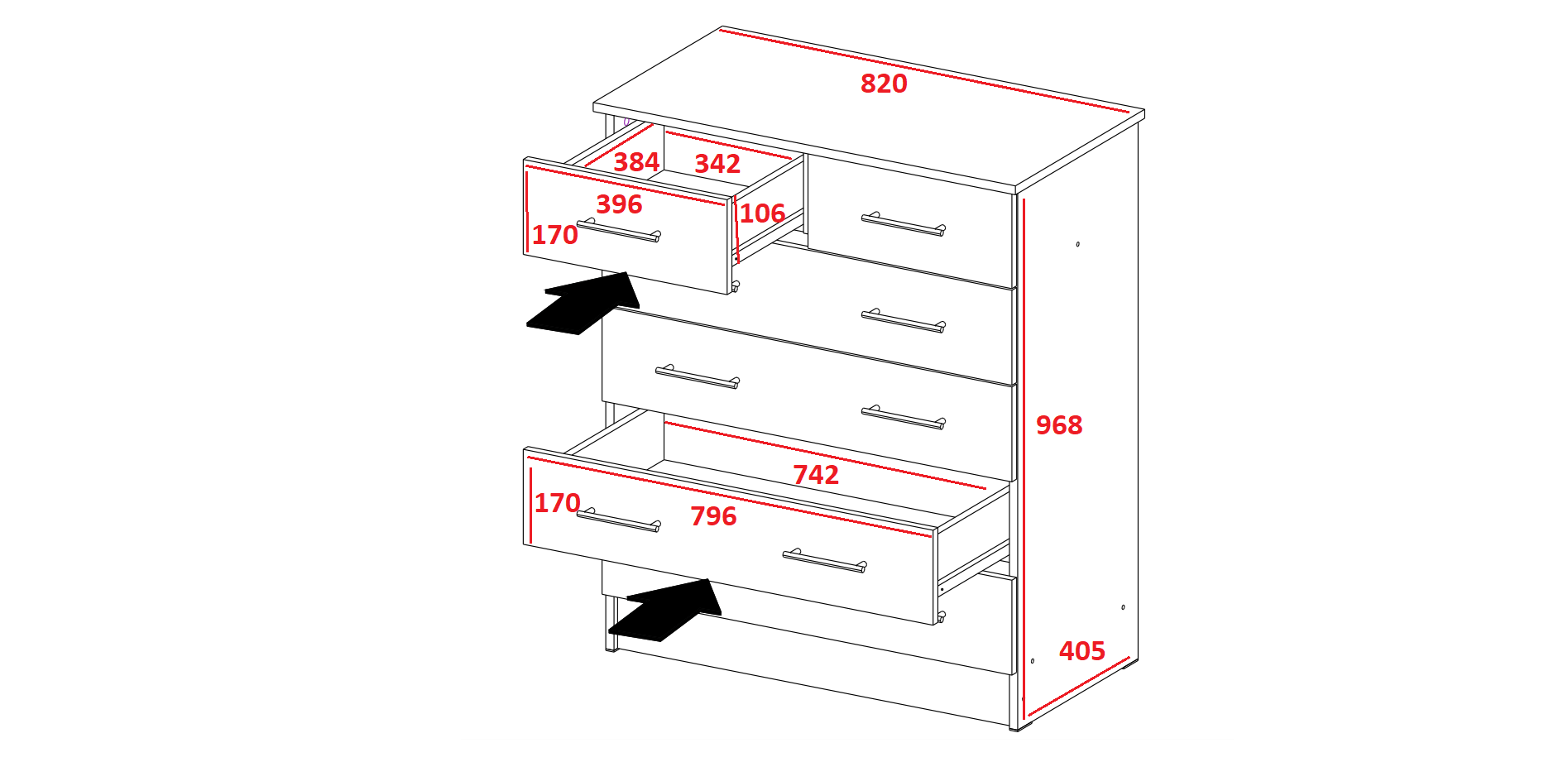 — Максимальная нагрузка на ящики (нижние): 8-10 кг