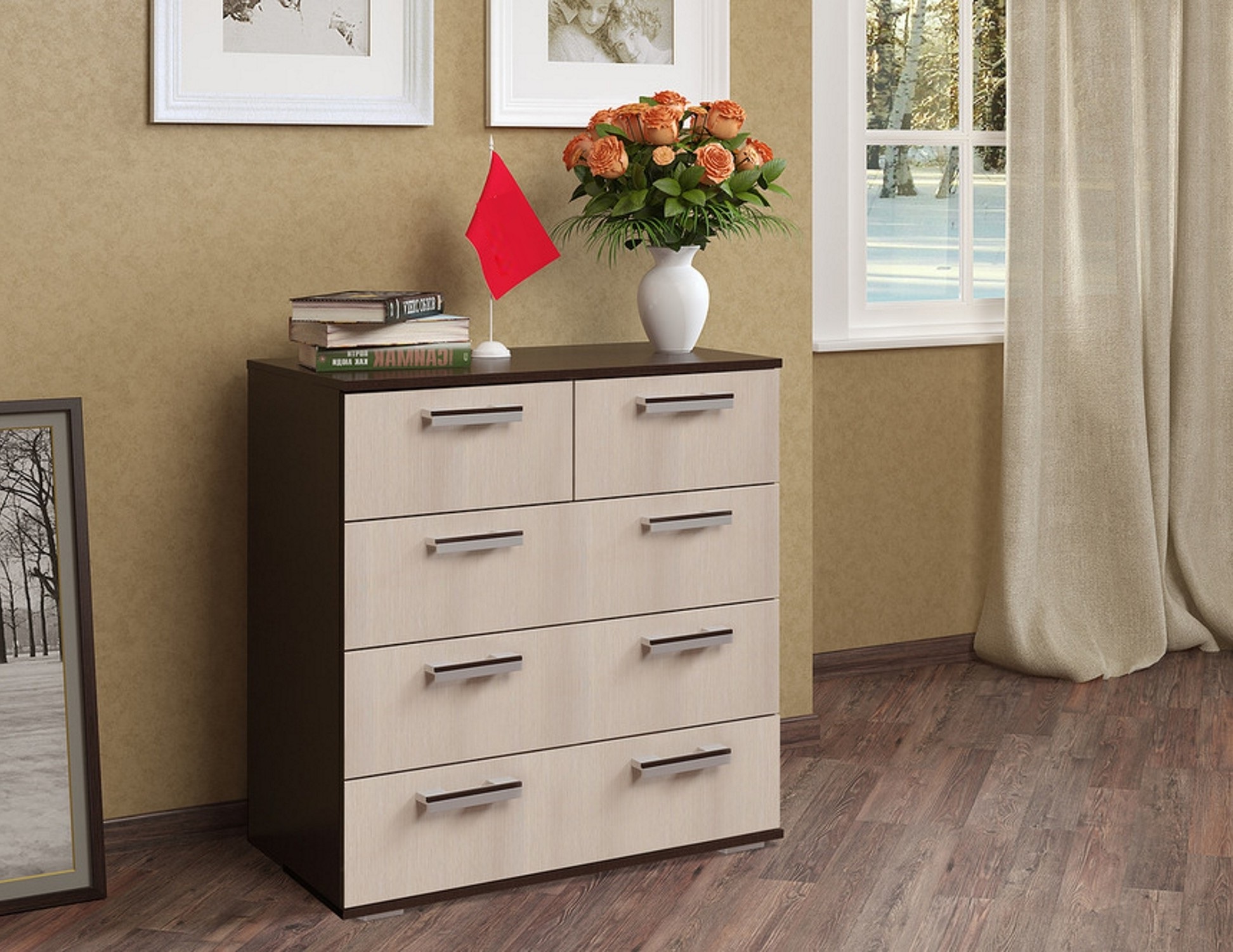 Комод «Стандарт 5» — яркий пример того, что стандартные конструкции не всегда банальны и неинтересны. Простой, но привлекательный дизайн сочетается с компактностью, эргономичностью, функциональностью мебели, и делает комод «Стандарт 5» прекрасным выходом из положения при оформлении комнат различных размеров, планировок, назначений. А если ко всем вышеперечисленным достоинствам модели добавить еще и низкую стоимость, то любые сомнения в выборе отпадают сами собой…Вы ищете практичную, привлекательную, недорогую корпусную мебель?