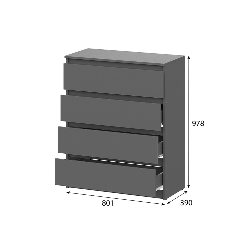 Модульная система "Денвер" Комод 4 ящика Графит серый - Фирменный интернет-магазин мебели «Арника»