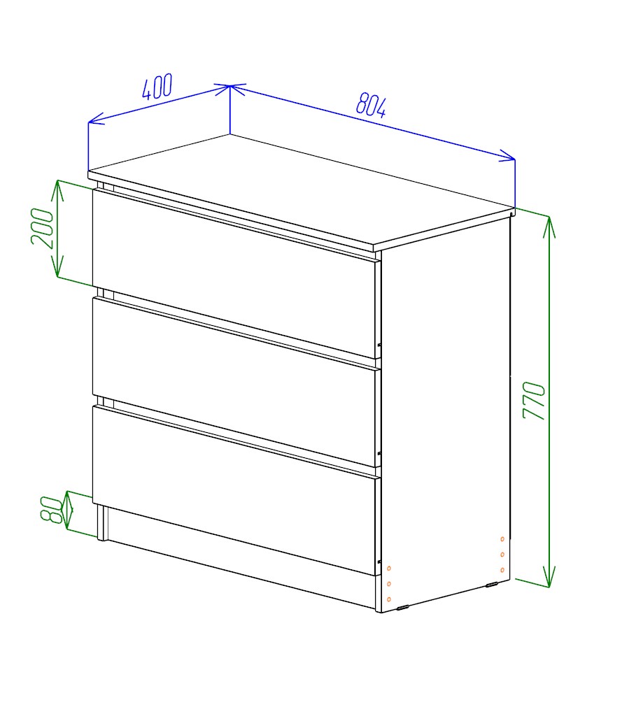 МС Охта Лайт Комод 800.3 Дуб ВотанБелый гладкий