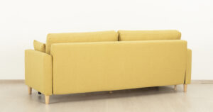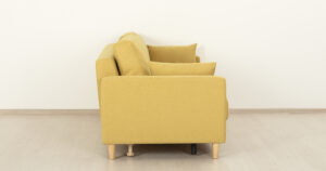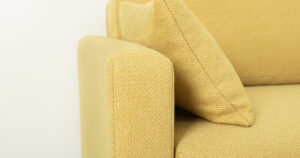 Минималистичный дизайн характеризуется строгими геометрическими формами и минимальным количеством декоративных элементов. Комфорт обеспечивается глубокой мягкой посадкой диванов и кресла, а также наличием удобного подголовника и поддержки поясничной зоны. Экологичность достигается благодаря использованию опор из натурального дерева и высококачественных экологически чистых материалов.
