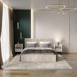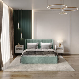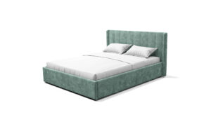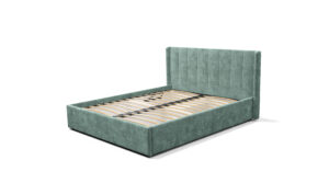 — Материал мягких частей — велюр, задняя сторона — спанбонд серый. Декор изголовья — стежка.