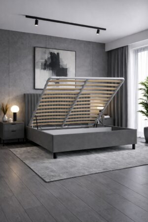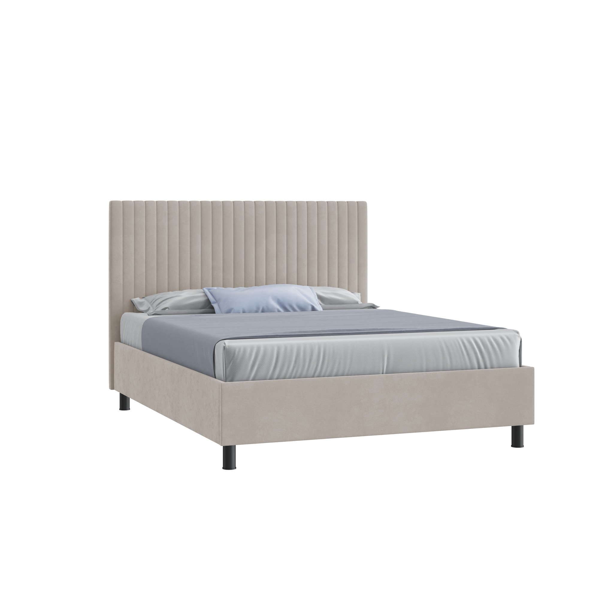Высокое мягкое изголовье обеспечивает дополнительный комфорт — на него удобно опереться во время чтения, просмотра фильмов или отдыха. Кровать устанавливается на прочные металлические опоры высотой 12 см, что облегчает уборку и поддержание чистоты под мебелью.