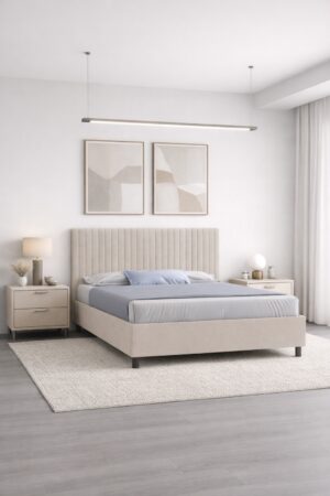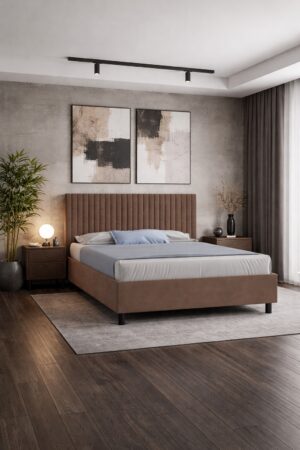 Кровать «Леона» — это сочетание современного дизайна, комфорта и функциональности для уютной спальни. Модель отличается стильным изголовьем с аккуратными вертикальными линиями, которые придают интерьеру выразительность и визуальную динамику. Лаконичный дизайн легко впишется как в современный, так и в классический интерьер.