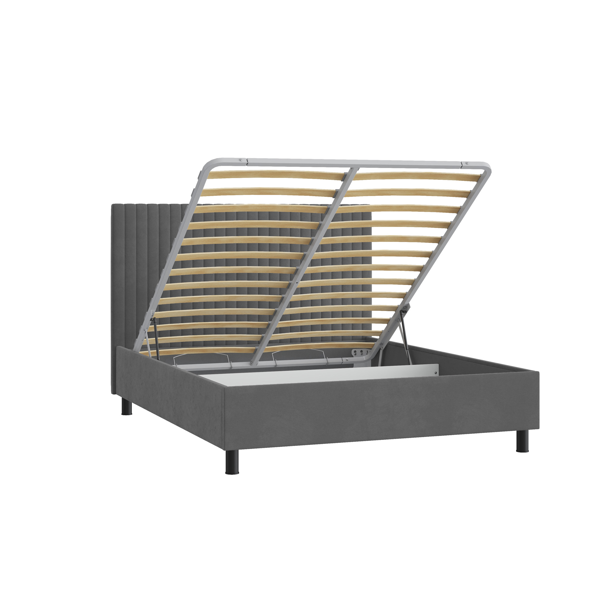 Высокое мягкое изголовье обеспечивает дополнительный комфорт — на него удобно опереться во время чтения, просмотра фильмов или отдыха. Кровать устанавливается на прочные металлические опоры высотой 12 см, что облегчает уборку и поддержание чистоты под мебелью.