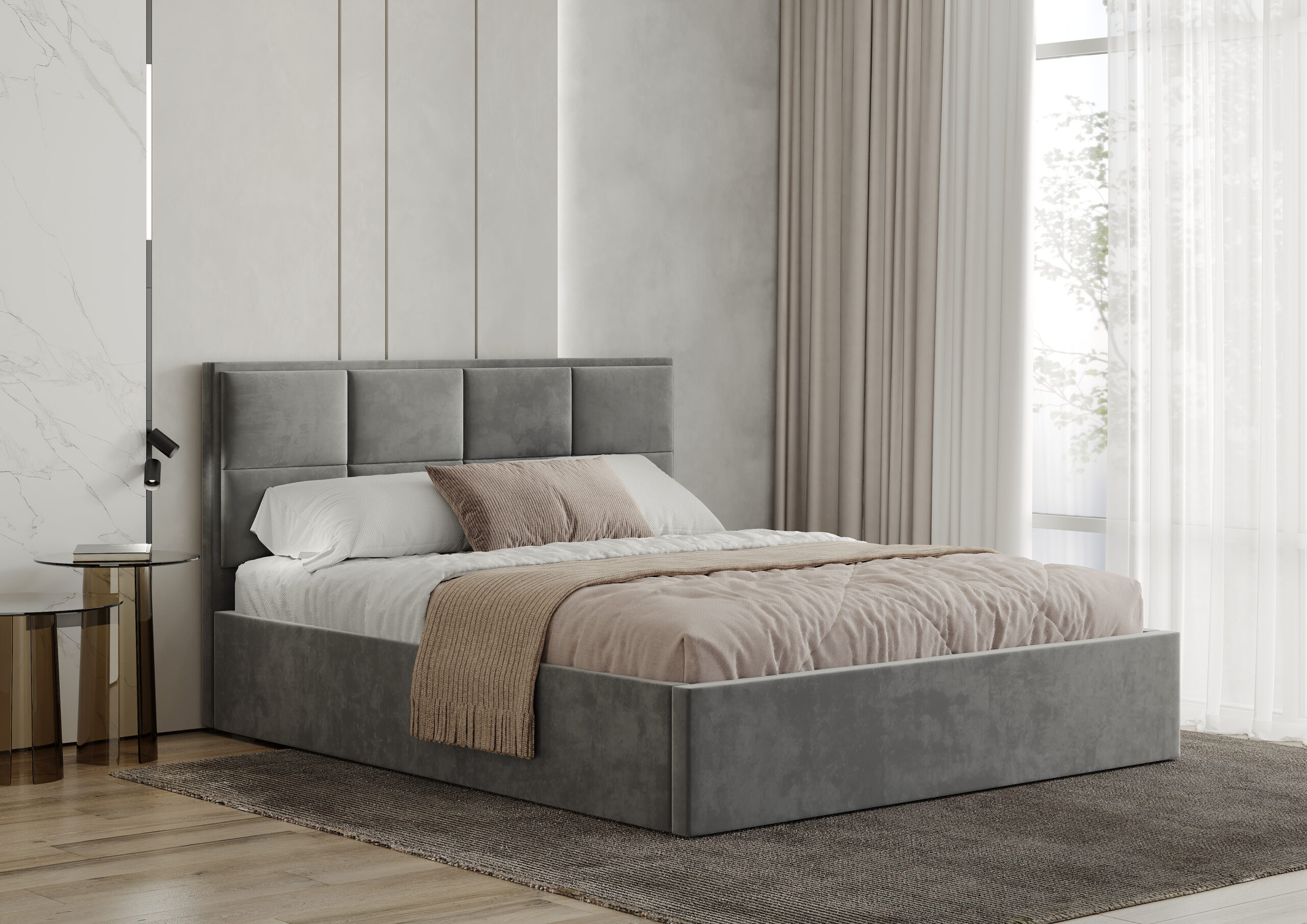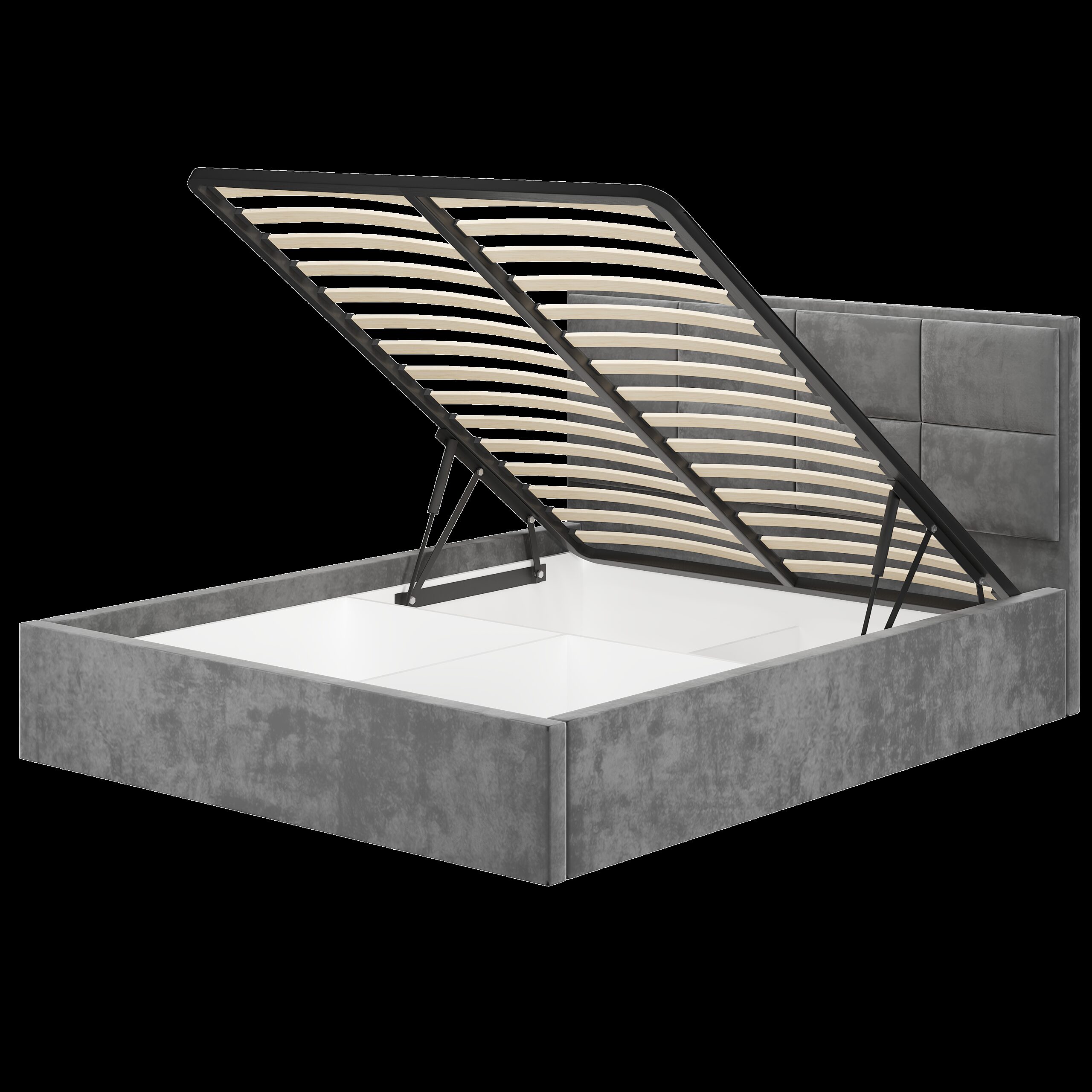Материал, используемый в изготовлении кровати, — велюр.