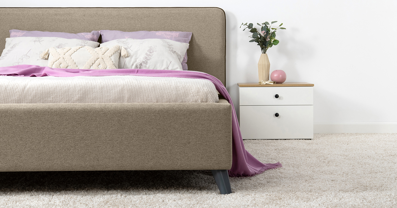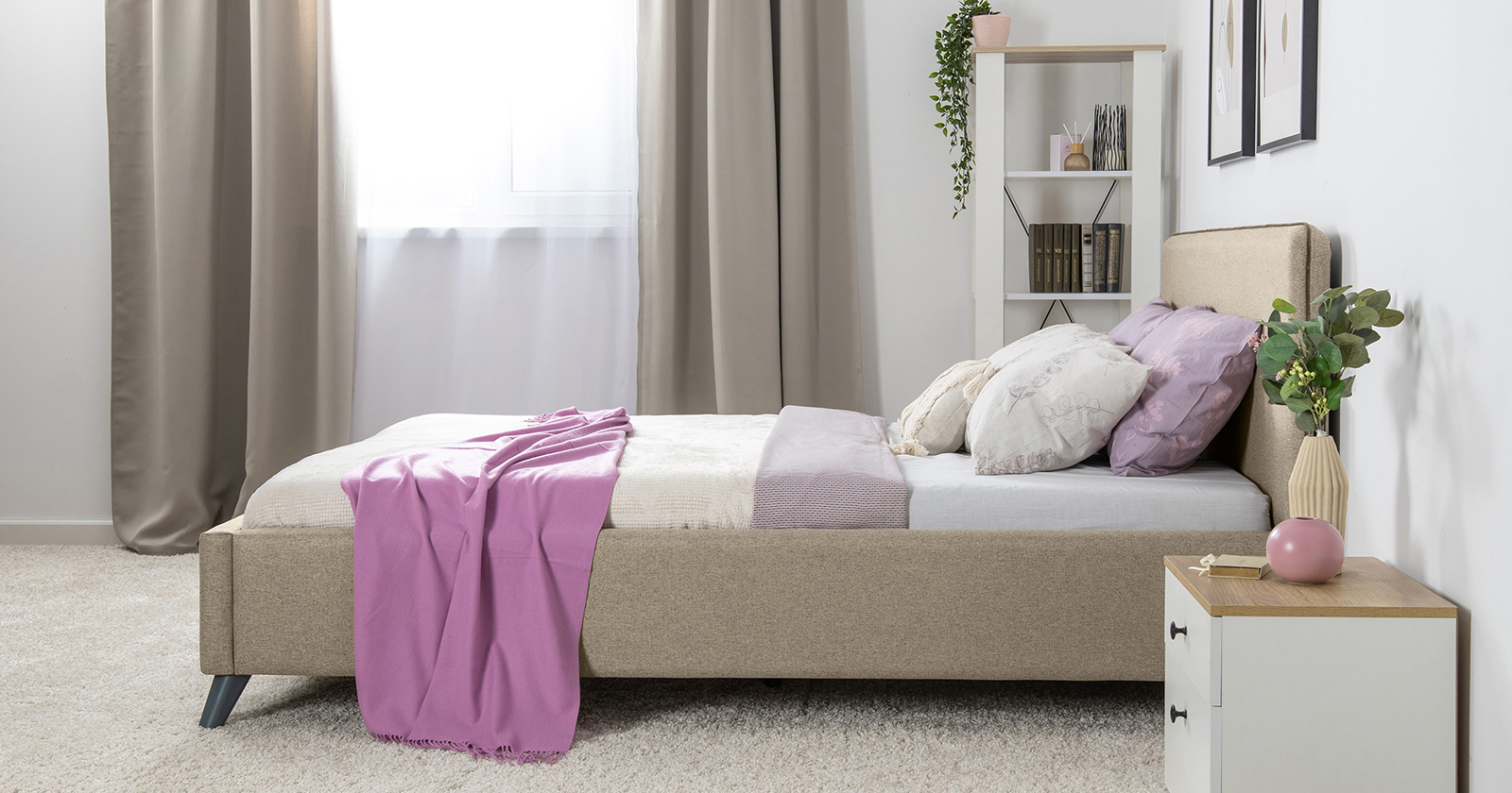 Лаконичный дизайн, гладкая и приятная на ощупь рогожка ярких или нейтральных цветов, высокие опоры – модная кровать МИА порадует сторонников скандинавского стиля.