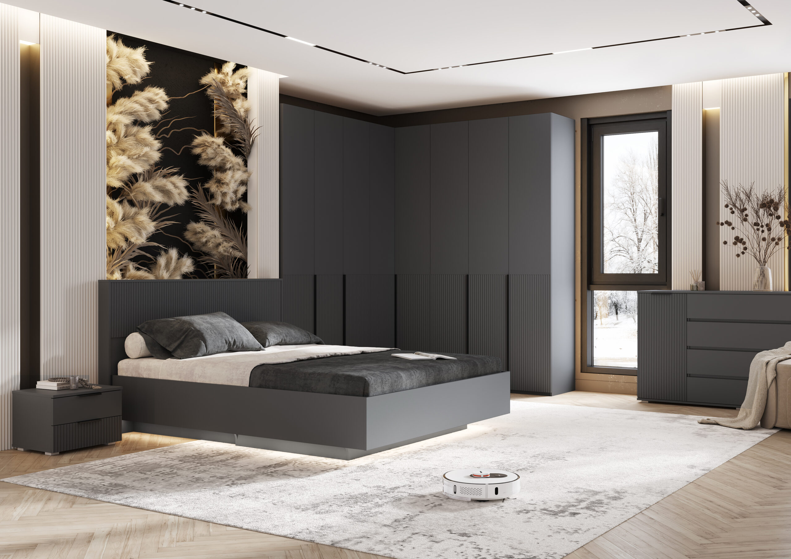 Парящая кровать Марвэл — это современное дизайнерское решение, создающее эффект лёгкости и невесомости в интерьере. За счёт скрытого основания конструкция визуально «висит» над полом, что усиливает впечатление парения и делает атмосферу спальни более уютной и расслабляющей.