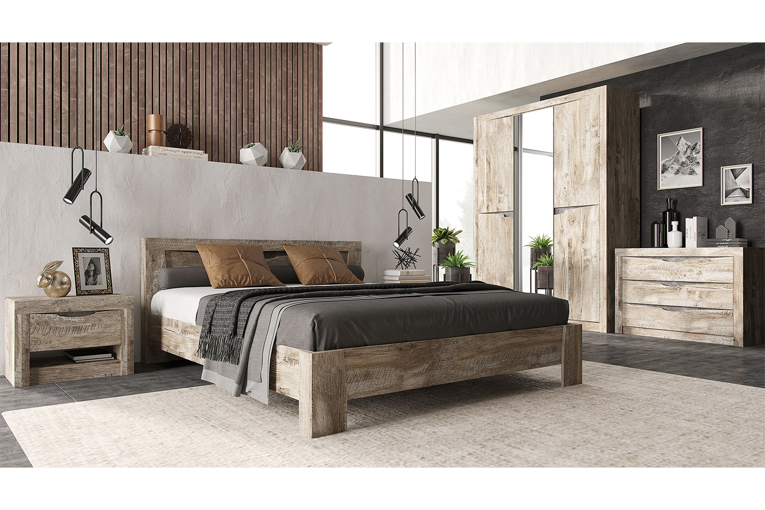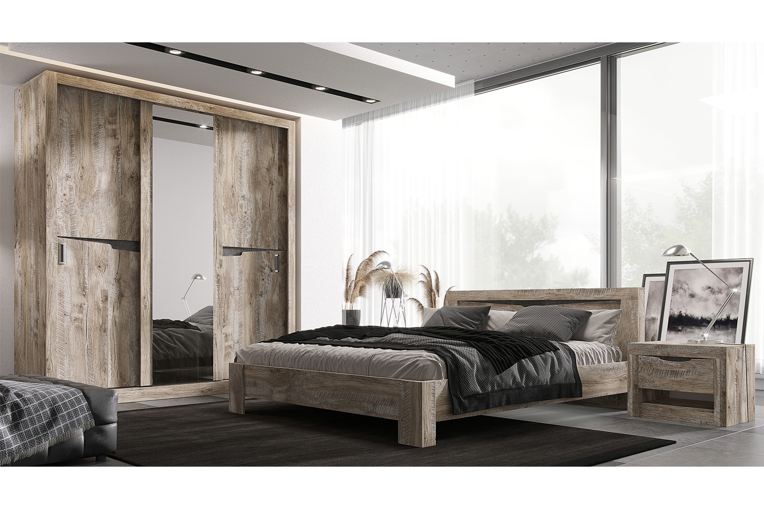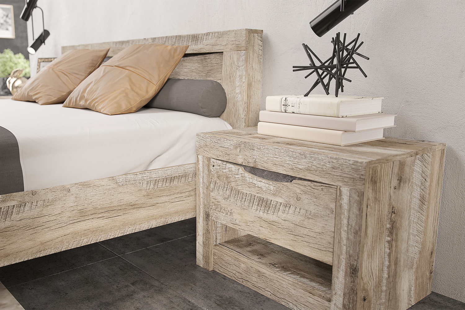 С/Г Ривьера Тумбы прикроватные (Дуб Юкон, Бетон темный) - Фирменный интернет-магазин мебели «Арника»