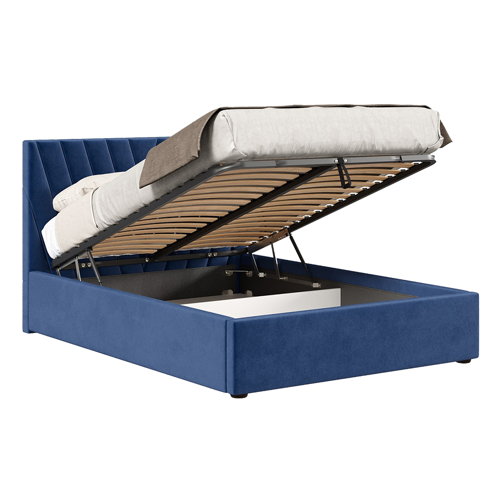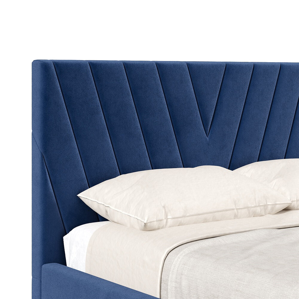 Изголовье и корпус кровати обтянуты велюром, приятным на ощупь и легко чистящимся.