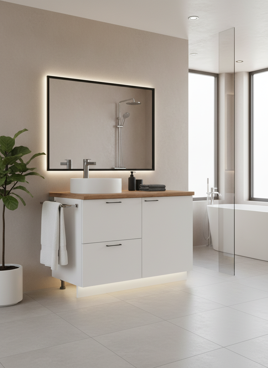 Гарнитур для ванной комнаты «Лизет» сочетает петербургскую элегантность и современную функциональность. Вдохновлённый эпохой Петра I и архитектурой Петербурга, он объединяет благородные цвета, тёплую древесную текстуру и лаконичные линии — для создания уютной и гармоничной ванны.