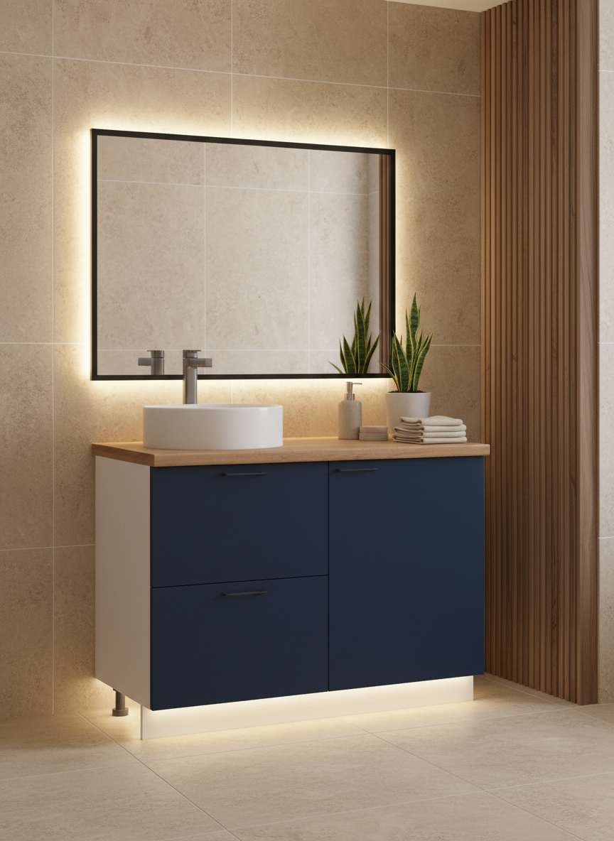 Гарнитур для ванной комнаты «Лизет» сочетает петербургскую элегантность и современную функциональность. Вдохновлённый эпохой Петра I и архитектурой Петербурга, он объединяет благородные цвета, тёплую древесную текстуру и лаконичные линии — для создания уютной и гармоничной ванны.