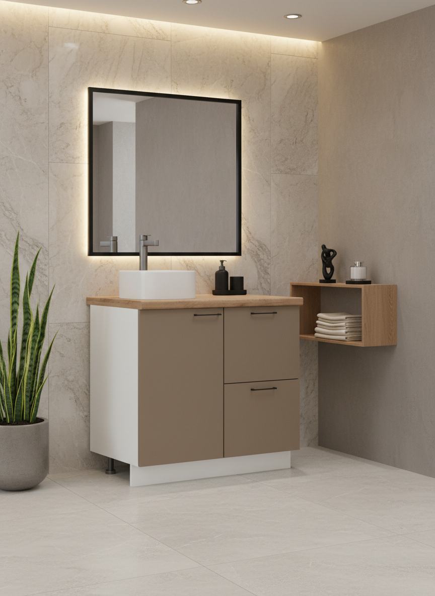 Гарнитур для ванной комнаты «Лизет» сочетает петербургскую элегантность и современную функциональность. Вдохновлённый эпохой Петра I и архитектурой Петербурга, он объединяет благородные цвета, тёплую древесную текстуру и лаконичные линии — для создания уютной и гармоничной ванны.